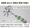 風の抵抗と騒音を軽減する独自7枚羽根と、自在に回転速度を切り替えられるブラシレスDCモータを採用。