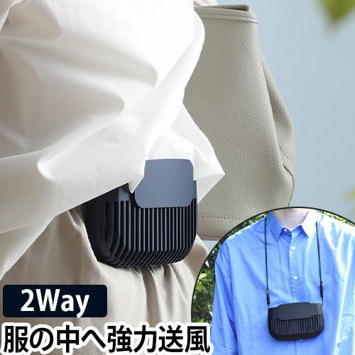 付属のネックストラップを使えば首掛けファンとしても使える2Wayファンです。ハンズフリーで使えるので庭作業や洗車など外仕事にもピッタリ♪モヤモヤ汗ばむ服の中を快適にしてくれること間違いなしです!