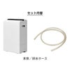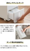 着脱がしやすく、水捨て時にこぼれにくい蓋つきのタンク。付属ホースで排水も可能です。
