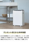 水分を乾燥剤のフィルターに吸着させ、ヒーターの熱で乾燥させて除湿するデシカント式を採用。室温で除湿能力が左右されにくく、年間を通して活躍します。