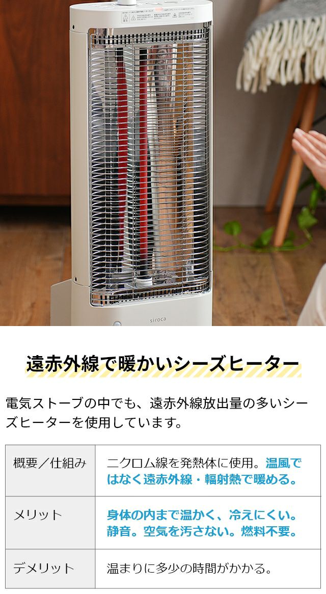 他の画像を見る シーズヒーター/ヒーター/足元ヒーター/電気ストーブ/電気ヒーター/ファンヒーター/セラミックファンヒーター/遠赤/遠赤外線/速暖/足元/静音/省エネ/エコ/おしゃれ/自動首振り/首振り シロカ シーズヒーター 足元ファンヒーター付き 遠赤外線暖房機 SH-FC131 ヒーター 足元ヒーター 電気ストーブ 電気ヒーター ファンヒーター セラミックファンヒーター 遠赤 遠赤外線 速暖 足元 静音 省エネ エコ おしゃれ 自動首振り 首振り siroca 当店特別価格 ¥ 24,800 税込 在庫切れ 詳細を見る お気に入りに登録する