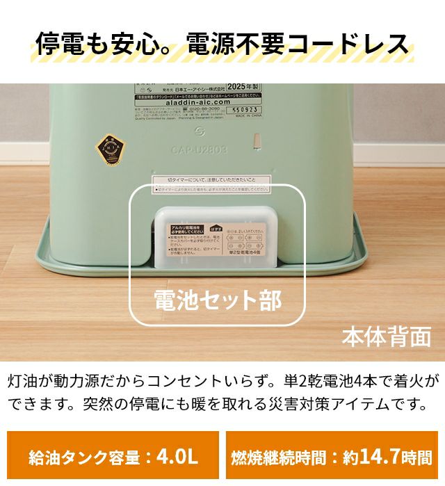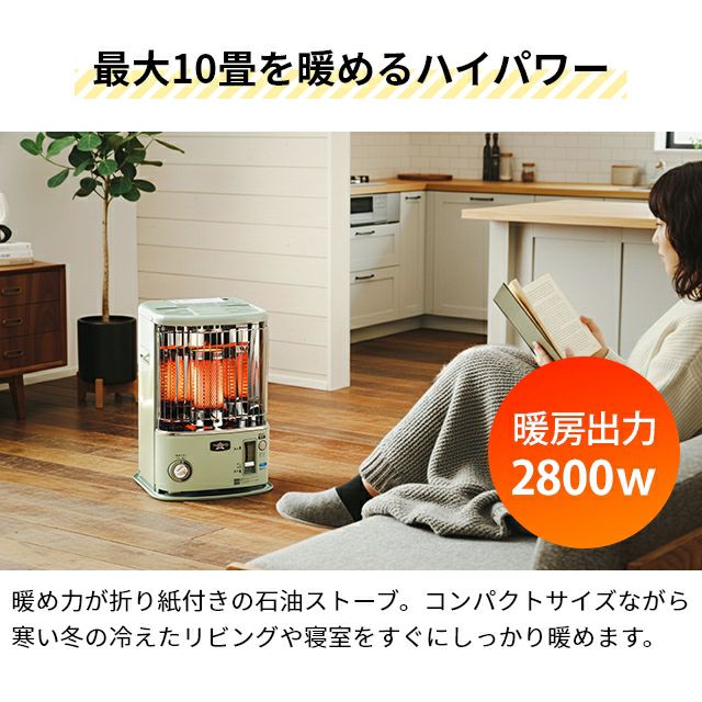 他の画像を見る 2800W相当のハイパワーで最大10畳を暖め、アラジンならではのレトロでおしゃれなデザインがインテリアを彩ります。灯油を入れて使うので、コンセント不要のコードレス! アラジン ストーブ 最新モデル 石油ストーブ CAP-U2803 おしゃれ レトロ かわいい 可愛い アンティーク パワフル あったか ヒーター 電池式 コードレス 省エネ タイマー 小型 暖房 暖房器具 非常用 防災グッズ 防災対策 災害対策 停電 6畳 8畳 10畳 Aladdin 当店特別価格 ¥ 36,300 税込 在庫切れ 詳細を見る お気に入りに登録する