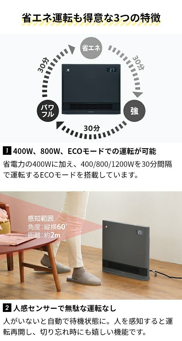 他の画像を見る 省エネ運転からパワフル運転まで全てをこなすセラミックヒーター!さらに人感センサー、温度調節、オフタイマー、リモコンつき。スリムなデザインでお部屋に馴染みます。 クワッズ ファンヒーター 省エネ大風量スリムパネルセラミックヒーター ワイドエナヒート QS324 セラミックファンヒーター 足元ヒーター 省エネ 人感センサー パワフル 速暖 即暖 スリム おしゃれ リビング 脱衣所 オフィス QUADS 当店特別価格 ¥ 11,979 税込 在庫切れ 詳細を見る お気に入りに登録する