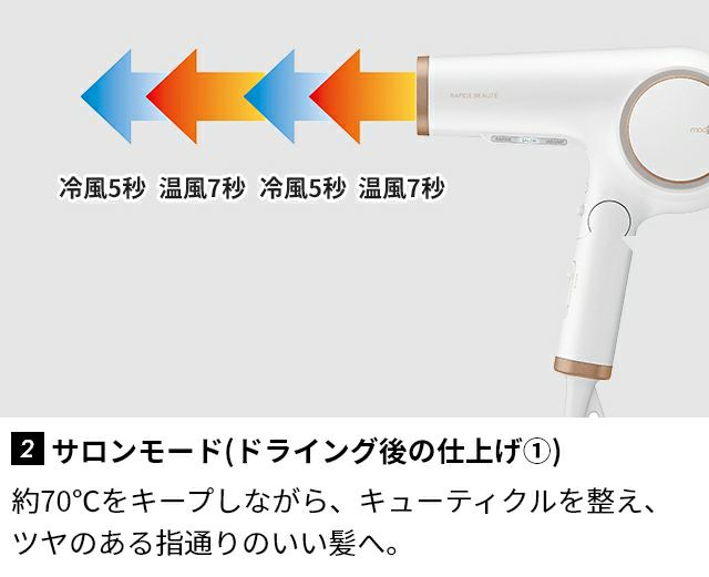 適度な水分を残してしっとり乾かす、仕上がり重視のサロンドライヤー。HOT/COOLが自動で切り替わることで熱から髪を守り、サラッとまとまりのある髪へと導きます。 モッズヘア 【特典付き】 ヘアドライヤー アドバンス ラピッドボーテ MHD-1254 ヘアードライヤー マイナスイオン サラサラ 軽い 美髪 熱くない 軽量 大風量 くし付き ストレート 速乾 温冷自動切替 自動 温度調節 サロンドライヤー mod's hair