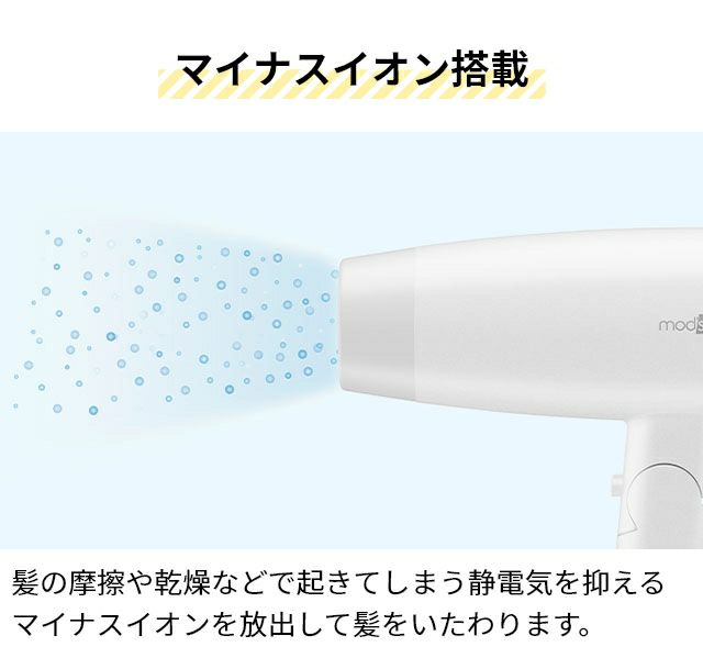 髪を素早く乾かす速乾モデルのドライヤー。広範囲に風が届く一体型ノズルで、風のあたりがやさしく、髪をときほぐすように乾かします。忙しい朝でもストレスフリー。 モッズ・ヘア 【特典付き】 ヘアドライヤー アドバンススマートコンパクトイオンヘアードライヤー MHD-1234 速乾 大風量 マイナスイオン 海外対応 機内持ち込み 軽量 軽い コンパクト 小型 持ち運び 旅行 子供 メンズ モッズヘア mod's hair
