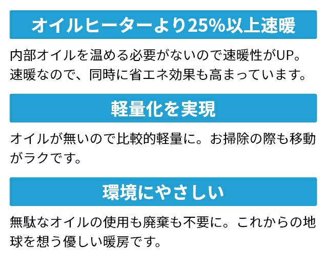 他の画像を見る 速暖・軽量のオイルフリーヒーターは自然対流熱と輻射熱で最大10畳に対応!空気を汚さず乾燥しにくく、約7.6dBと超静音。省エネに優れ、オン/オフタイマー対応です。 ディンプレックス オイルフリーヒーター エボラッド オイルフリーヒーター B05 EVR12ECOMBA1 オイルヒーター オイルレスヒーター 暖房 速暖 即暖 暖かい 静音 省エネ 1200W キャスター 寝室 リビング 10畳 Dimplex EVORAD 当店特別価格 ¥ 54,780 税込 在庫切れ 詳細を見る お気に入りに登録する