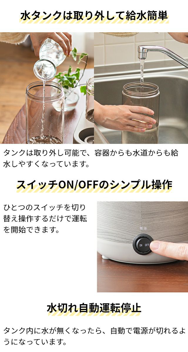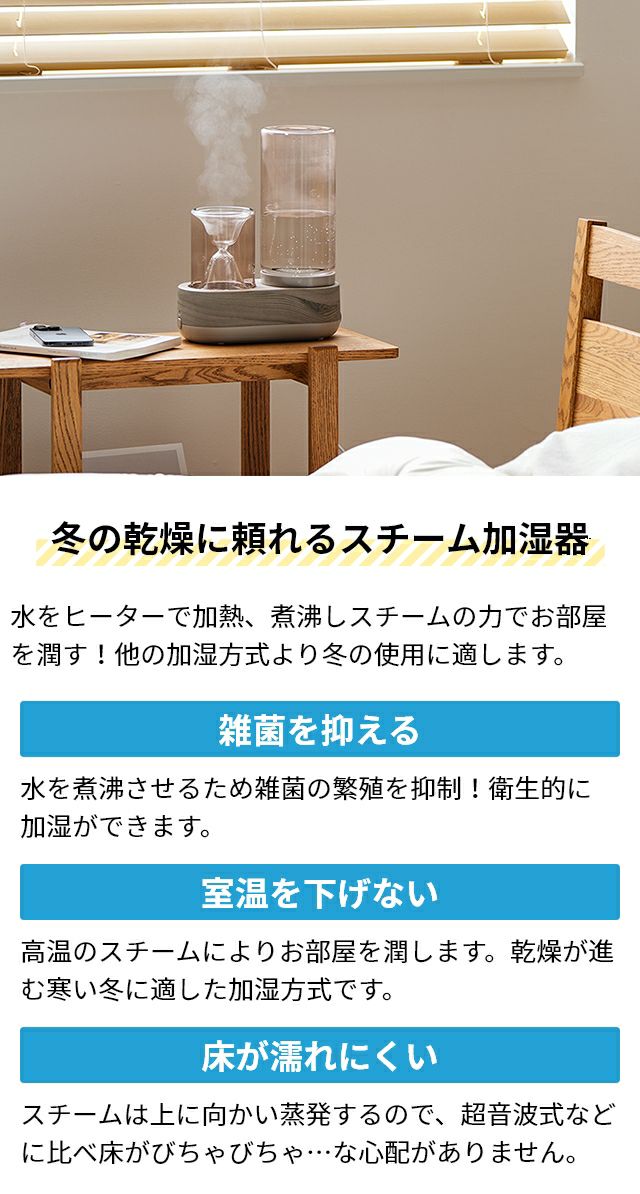 他の画像を見る 加熱したミストだから清潔、室温を下げない、床が濡れにくいスチーム式加湿器。静音性が高く倒れにくい吸盤構造で、寝室に置いて使用するのにも最適です。 ドウシシャ 加湿器 スチーム式 Korobaan スチーム式加湿器 200S KSY-2011 スチーム 加熱式 卓上 小型 コンパクト 強力 静音 リビング オフィス 寝室 ベッドサイド おしゃれ 北欧 シンプル 倒れにくい 乾燥対策 ミスト 保湿 ガラス DOSHISHA 当店特別価格 ¥ 8,778 税込 在庫切れ 詳細を見る お気に入りに登録する