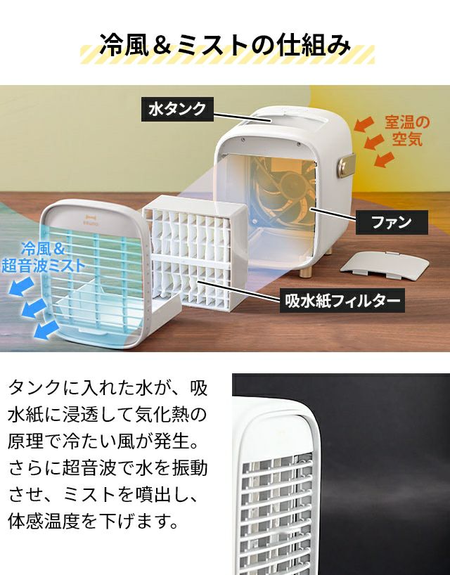 他の画像を見る 超音波式ミストと、フィルター気化熱で快適な湿度の涼しい風を送るブルーノ ポータブルデスクミストファン。 ブルーノ ポータブルデスクミストファン BDE063 冷風扇 スポットクーラー 扇風機 卓上 アウトドア 小型 dcモーター 気化熱 usb 涼しい おしゃれ ミニ コンパクト コードレス コードレス無し 冷風 充電 式 ルーバー スリム BRUNO PORTABLE DESK MIST FAN 当店特別価格 ¥ 2,700 税込 在庫切れ 詳細を見る お気に入りに登録する