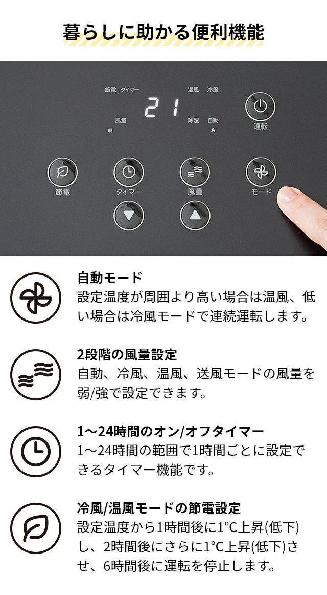 他の画像を見る 工事不要ですぐ使える移動式パワフルエアコン!冷房、暖房、除湿で衣類乾燥も叶うので、1年中活躍。省エネ節電モード、温度設定、24hオンオフタイマーなど機能も充実です。 スポットエアコン 暖房機能付 スポットエアクーラー ヒート&クール SC-T2342 エアコン スポットクーラー 冷房 冷風機 ファンヒーター 工事不要 移動式 家庭用 床置き 小型 除湿 部屋干し 洗濯物 梅雨 花粉 リモコン ノンドレン THREEUP 当店特別価格 ¥ 63,800 税込 在庫切れ 詳細を見る お気に入りに登録する