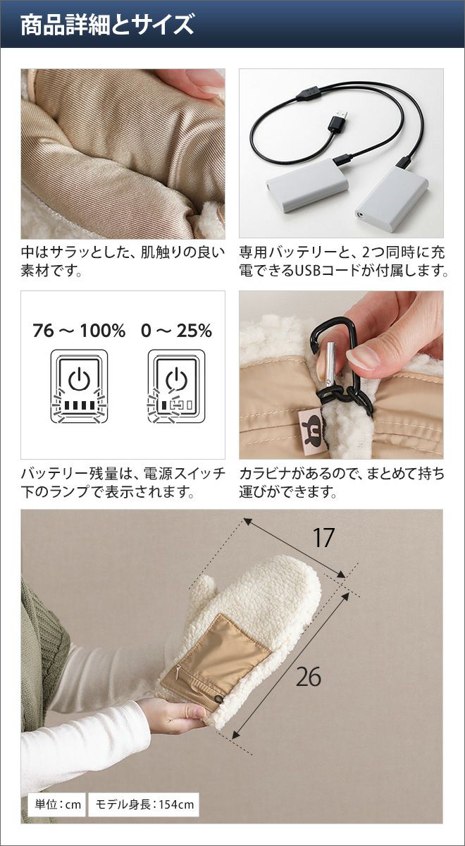 他の画像を見る ハンドウォーマー/充電式ボアミトン/ぬくぬく/EWT-2151/電気/ボア/ミトン/手袋/レディース/指先/暖かい/usb/カバー/付き/指なし/電気あんか/充電式/コードレス/省エネ/ヒーター付き/室内 充電式ボアミトン ぬくぬく EWT-2151 当店特別価格 ¥ 6,380 税込 在庫切れ 詳細を見る お気に入りに登録する