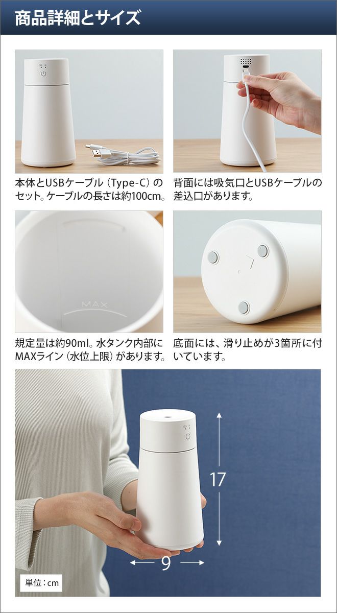 他の画像を見る 超音波式加湿器/小型/シンプルマインド/USB充電式ミニ加湿器/コロン/ミニ/ディフューザー/コードレス/充電式/USB/ポータブル/携帯//SMHM-004/ホワイト/白可愛い/かわいい/デザイン 超音波式加湿器 小型 シンプルマインド USB充電式ミニ加湿器 コロン ミニ ディフューザー コードレス 充電式 USB 当店特別価格 ¥ 3,850 税込 在庫切れ 詳細を見る お気に入りに登録する