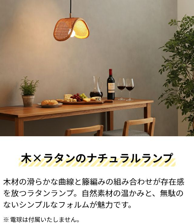 他の画像を見る 木材の滑らかな曲線と天然の籐の組み合わせが存在感を放つペンダントライト。シェードは一つ一つ手編みで制作され、編み目から漏れる光が柔らかく空間を照らします。 ブリッド オリカ 【選べる2大特典】 ペンダントライト ナチュラル ラタンペンダントランプ 1バルブ 電球あり おしゃれ ダイニング 北欧 1灯 かわいい 木 キッチン 寝室 小さめ トイレ 籐 和モダン ラタン 玄関 BRID OLIKA RATTAN PENDANT LAMP 1BULB 当店特別価格 ¥ 20,020 税込 詳細を見る お気に入りに登録する