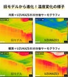 旧モデルより斜め下の送風設計にすることで「渦風力」がアップ!パワフルに空気循環し、エアコンの冷気や暖気のムラを早く解消します。