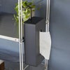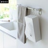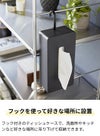 フックを使って吊り下げられる「tower (タワー) 引っ掛けティッシュケース」。台座背面の差し込み口がT字になっており、フックの向きを90°ずつ4方向に変えられます。タオルバーやラックのフレームなど必要な場所に引っ掛けられて便利です!コンパクトなサイズとシンプルなデザインは、形も見た目も邪魔にならないスマートなアイテムです。