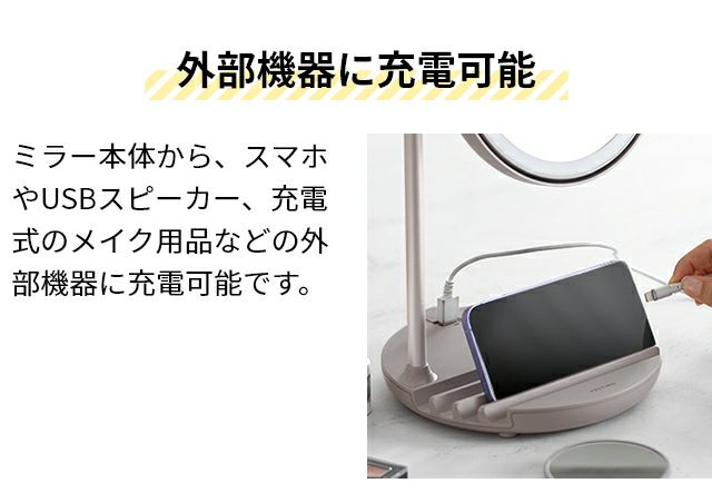 他の画像を見る 自然光に限りなく近い光のLEDライトでメイクの発色もきれいに映し出すUSB充電式ミラー。ミラー周りからの柔らかい風はお風呂あがりや暑い夏のメイク時にも活躍します。 フェスティノ 【選べる豪華特典】 拡大鏡付き 卓上ミラー ファン ライトミラー LEDライト 化粧鏡 女優ライト ライト付き 卓上鏡 5倍拡大 卓上 スタンド USB充電 充電式 角度調整 メイク 仕上げ きれい SMHB-032[ FESTINO 充電式LEDファンミラー ] 当店特別価格 ¥ 8,800 税込 詳細を見る お気に入りに登録する