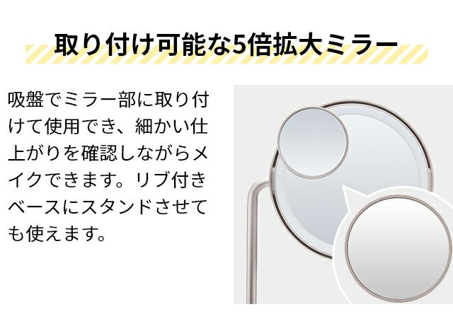 他の画像を見る 均一な明かりでメイクがしやすくなる、LED内蔵の卓上ミラーです。5倍の拡大鏡付き。 FESTINO アラウンドLEDミラー 当店特別価格 ¥ 3,850 税込 在庫切れ 詳細を見る お気に入りに登録する