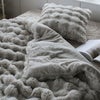 表面はふわふわのラビットファー調、裏面はとろけるようなミンクファー調。両面で異なる手触りを楽しめる贅沢な仕上がりです。