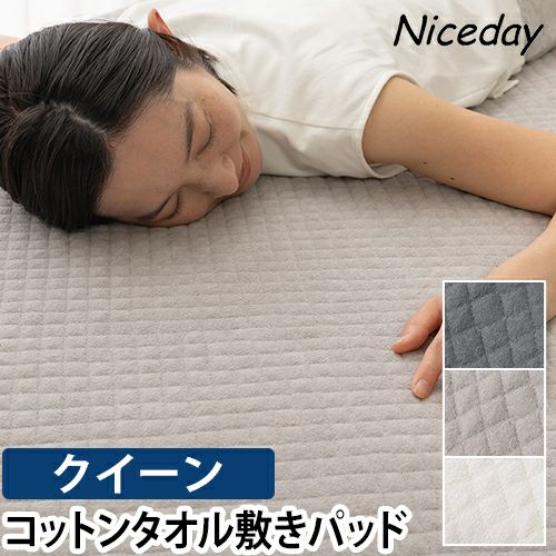 他の画像を見る コットンのタオル地が心地よい敷きパッドクイーンサイズ。優れた吸湿性とキルトの凸凹によって蒸れにくく、オールシーズン使えます♪洗濯機で洗えるからお手入れも簡単。 ナイスデイ 敷きパッド さらっと快適 天然素材(綿100%)タオルの敷きパッド(中綿レーヨン入り) Q ベッドパッド 敷き布団 ベッドシーツ 敷パッド クイーン カバー 綿 敷布団カバー オールシーズン 洗える 滑り止め コットン 汗 おしゃれ マットレス ズレない Niceday 当店特別価格 ¥ 3,990 税込 在庫切れ 詳細を見る お気に入りに登録する