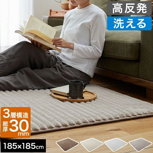 とろける肌触りのふんわりラインラグ 丸洗いできる高反発ウレタンタイプ 185×185cm