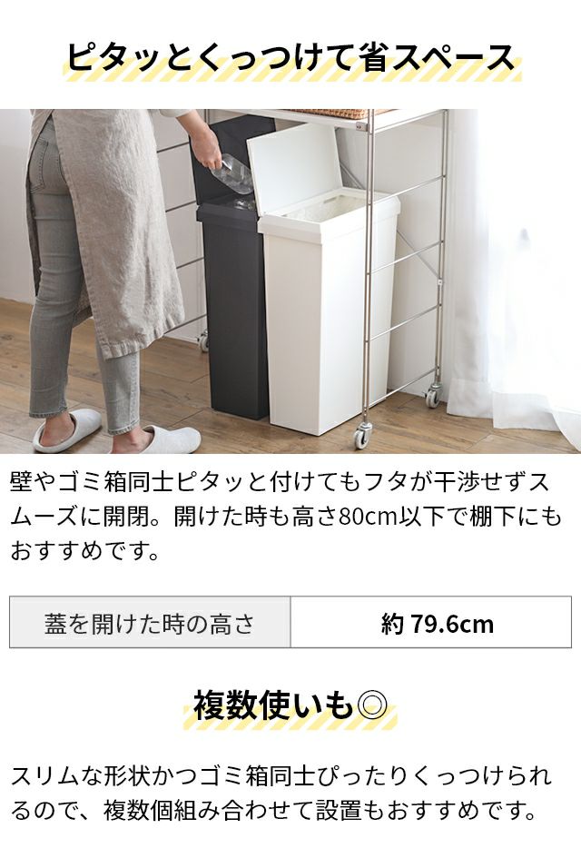 他の画像を見る 袋をかけて、フタ枠で挟むだけの最短10秒!ゴミ袋交換が簡単・素早く・きれいにできる40Lごみ箱。キッチンの隙間に置ける幅20cm以下のスリム設計。キャスター付きです。 ソロウ ゴミ箱 ふた付き 隙間で使える スリムダストボックス ハンドオープン40L 蓋付きゴミ箱 くず入れ 大容量 45リットル袋 おしゃれ 蓋付き インテリア リビング キャスター付き キッチン コンパクト 仕分け 省スペース 分別 容量40L 北欧 見えない SOLOW 当店特別価格 ¥ 4,400 税込 詳細を見る お気に入りに登録する