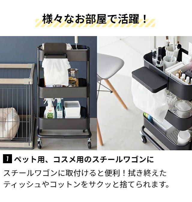 他の画像を見る 蓋つきのスリムなゴミ箱はマグネットで壁面にピタッとくっつきます。コスメ用品やペット用品を入れたスチールワゴン、冷蔵庫横、オフィスのキャビネット側面にぴったり! 山崎実業 ゴミ箱 ワゴンに付けられるマグネット蓋付きポリ袋ホルダー タワー 1701 1702 ゴミ袋ホルダー ゴミ入れ 蓋つき ごみ入れ 浮かせる スリム おしゃれ tower キッチン収納 コスメ収納 ペット用品収納 オフィス収納 yamazaki タワーシリーズ 当店特別価格 ¥ 2,200 税込 詳細を見る お気に入りに登録する