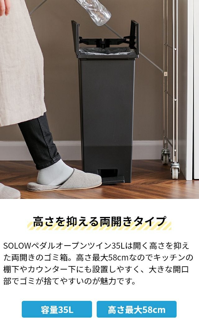 他の画像を見る 高さを抑えた両開きペダル式ゴミ箱35L ソロウ 【選べる豪華特典】 ゴミ箱 ペダル式 ペダルオープンツイン 35L GSLW0 ペダル式ゴミ箱 ゴミ箱 ダストボックス 35l 足踏み スリム 蓋付き 両開き 横開き 分別 棚下 キャスター フタ付き 日本製 バタフライ ペダル 袋止め SOLOW 当店特別価格 ¥ 4,070 税込 詳細を見る お気に入りに登録する