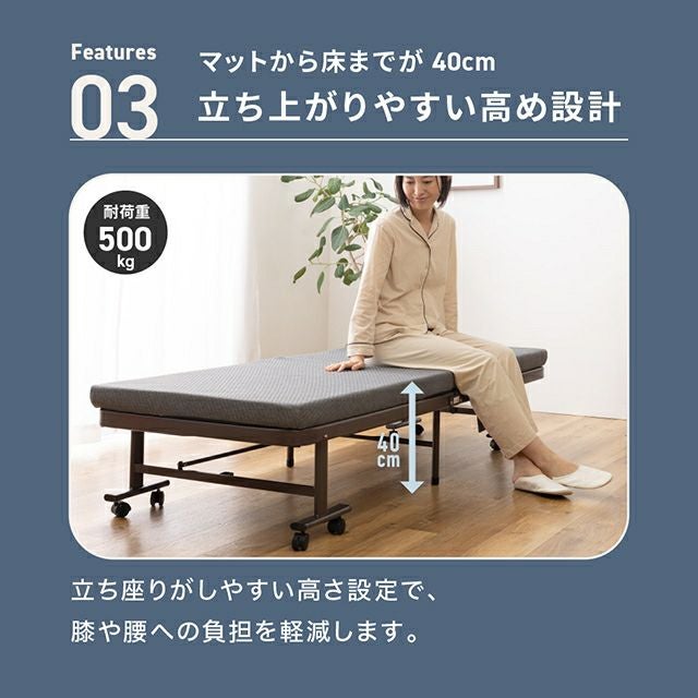 他の画像を見る 届いてすぐ使える寝心地を重視した完成品の折りたたみベッドです。狭いお部屋でもスペース有効利用できるコンパクト設計。キャスターが付いているので移動がラクラク。 ナイスデイ リクライニングベッド 届いてすぐ使える便利な完成品の折りたたみベッド ハイタイプ 高さ40cm SS ベッド 簡易ベッド ベッドフレーム セミシングル マットレス付き コンパクト 完成品 組立不要 一人用 一人暮らし 省スペース Niceday 当店特別価格 ¥ 24,800 税込 在庫切れ 詳細を見る お気に入りに登録する