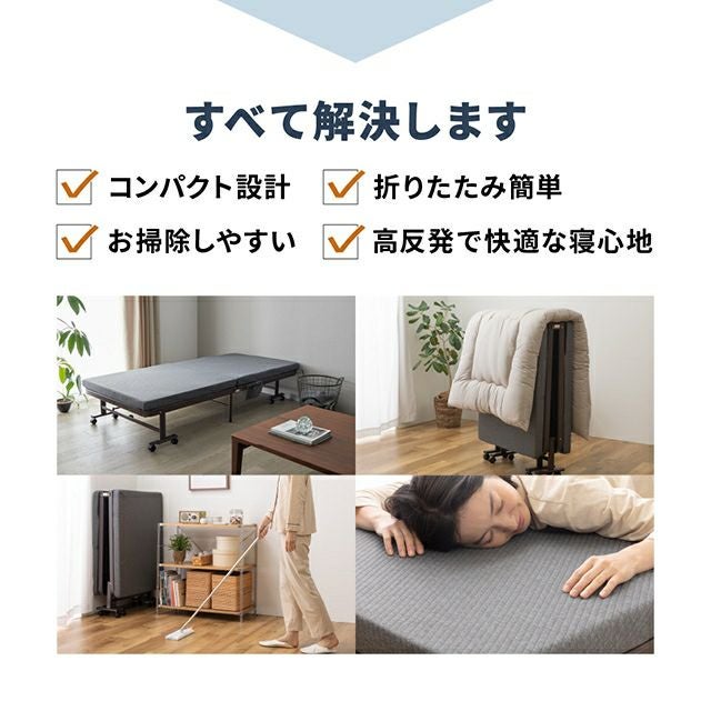 他の画像を見る 届いてすぐ使える寝心地を重視した完成品の折りたたみベッドです。狭いお部屋でもスペース有効利用できるコンパクト設計。キャスターが付いているので移動がラクラク。 ナイスデイ リクライニングベッド 届いてすぐ使える便利な完成品の折りたたみベッド ハイタイプ 高さ40cm S ベッド 簡易ベッド ベッドフレーム シングル マットレス付き コンパクト 完成品 組立不要 一人用 一人暮らし 省スペース Niceday 当店特別価格 ¥ 25,800 税込 在庫切れ 詳細を見る お気に入りに登録する