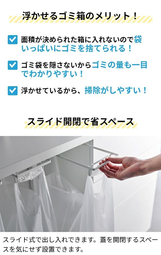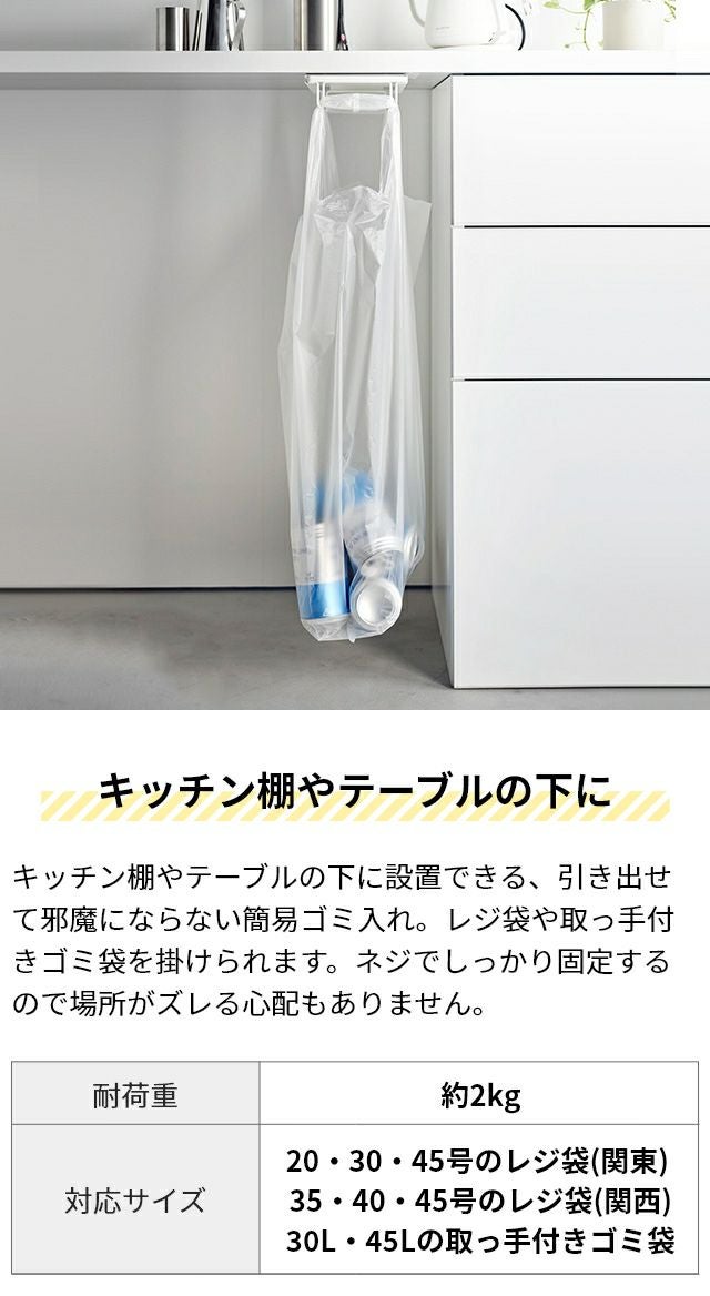 他の画像を見る レジ袋や市販ゴミ袋を吊り下げてゴミを捨てられるゴミ袋ホルダー。キッチンの棚下やテーブル下に設置できて、開口がスライド式だから省スペース!複数並べて分別にも便利。 山崎実業 ゴミ箱 テーブル下レジ袋ハンガー タワー 3332 3333 ダストボックス ゴミ袋ホルダー くずかご 分別ゴミ箱 ごみ箱 ごみ袋ホルダー 45リットル 棚下 おしゃれ 縦型 コンパクト レジ袋 tower キッチン収納 yamazaki タワーシリーズ 当店特別価格 ¥ 1,980 税込 在庫切れ 詳細を見る お気に入りに登録する