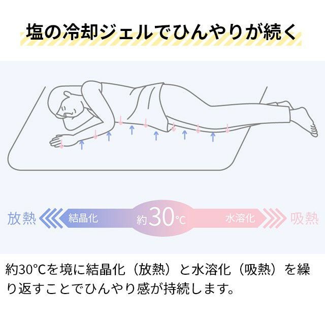 他の画像を見る 夏の寝苦しい夜も敷くだけで快適に眠れるひんやりジェルマット。接触冷感Q-MAX値は驚異の0.591。塩のジェルが冷たさを持続し、寝返りするたびにひんやり感を味わえます。 ナイスデイ 塩で冷やす 瞬間冷却 ひんやりジェルマット 90×140cm 単品 敷きパッド ひんやりマット クールマット ベッドパッド Q-MAX0.5 敷パッド 敷きパット 冷感 シングル 寝具 ひんやり 体圧分散 おしゃれ 結晶化 置くだけ クール 接触冷感 夏用 冷感 Niceday 当店特別価格 ¥ 2,499 税込 在庫切れ 詳細を見る お気に入りに登録する