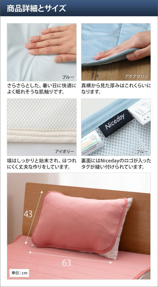 他の画像を見る 枕パッド/Niceday/ナイスデイ/ひんやり乾きやすい/スピードドライ/エアー枕パッド/まくらパッド/枕カバー/洗える/冷感/クール寝具/夏寝具/夏物/冷たい/蒸れにくい/さらさら/無地 枕パッド 枕カバー ひんやり乾きやすい スピードドライ エアー枕パッド 2枚組 43×63 Niceday ナイスデイ 夏 夏用 冷感 クール 洗える 当店特別価格 ¥ 1,490 税込 在庫切れ 詳細を見る お気に入りに登録する