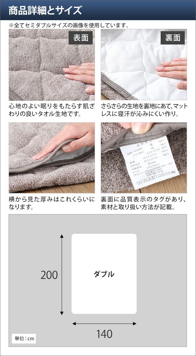 他の画像を見る 敷きパッド/さらっと快適 ぬけにくいパイル 天然素材【綿100%】タオルの敷きパッド/ダブル/D/140×200/綿100%/Niceday/ナイスデイ/無地/サラサラ/コットン/夏物/寝具/洗える/汗取り/FBZ さらっと快適 ぬけにくいパイル 天然素材【綿100%】タオルの敷きパッド ダブル D 敷きパッド 夏 ナイスデイ 無地 コットン 当店特別価格 ¥ 3,980 税込 在庫切れ 詳細を見る お気に入りに登録する