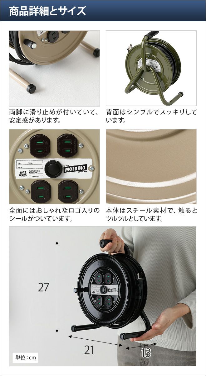 他の画像を見る コードリール/ブリッド/MOLDING/CORD/REEL/10m/延長コード/おしゃれ/屋内/日本製/BRID/インテリア/DIY/シンプル/コンパクト/スリム/4口/コンセント/収納 MOLDING CORD REEL 10m 当店特別価格 ¥ 8,800 税込 在庫切れ 詳細を見る お気に入りに登録する