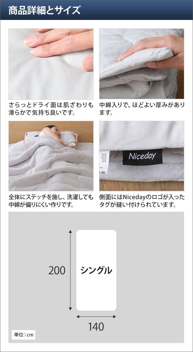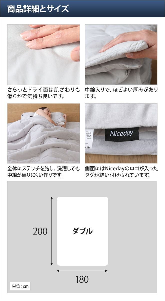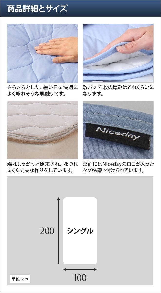 他の画像を見る 敷きパッド/洗える/Niceday/ドライコットン/綿100%/さらさら敷きパッド/敷きパット/抗菌防臭機能/敷布団/夏/春/秋/ウォッシャブル/夏布団//夏用/ベッドパッド/ペットパット Niceday さらっと快適 天然素材 綿100% 涼感ドライコットン 抗ウィルス・抗菌機能付きの敷きパッド ダブル さらさら 洗える 敷布団 春 夏 秋 夏用 当店特別価格 ¥ 3,990 税込 在庫切れ 詳細を見る お気に入りに登録する