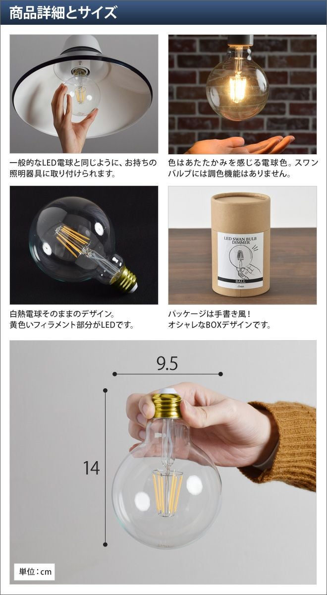 他の画像を見る フィラメントを再現した灯りがなんともノスタルジックなLED電球SWAN BULB。調光機能の備わった照明器具に対応しています! スワンバルブディマー ボール LED電球 2個セット 当店特別価格 ¥ 8,580 税込 在庫切れ 詳細を見る お気に入りに登録する