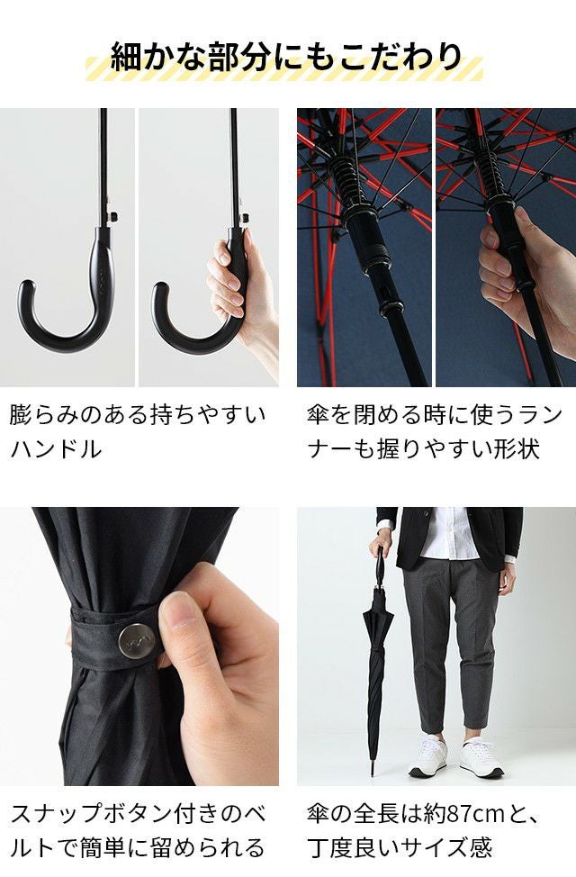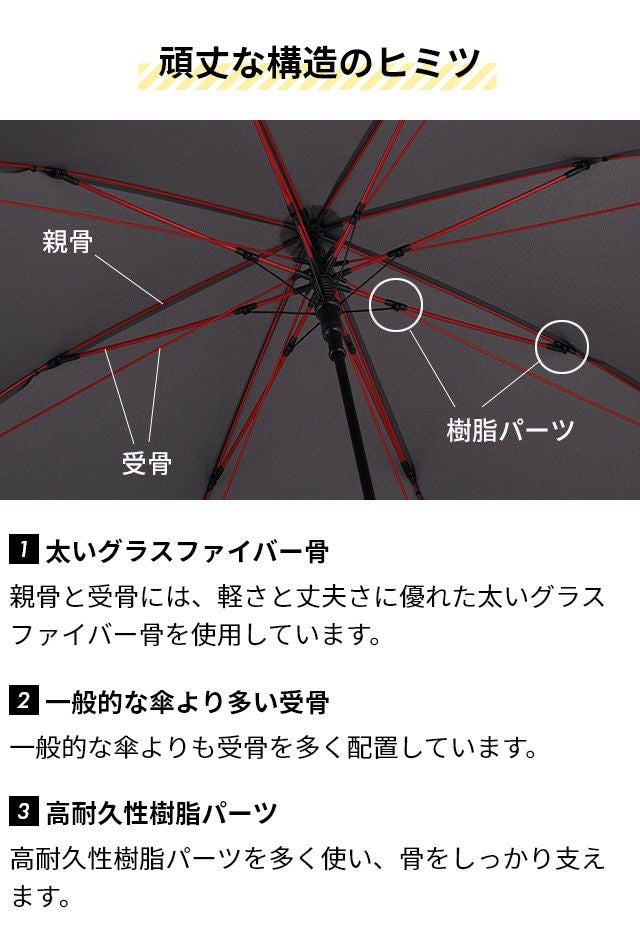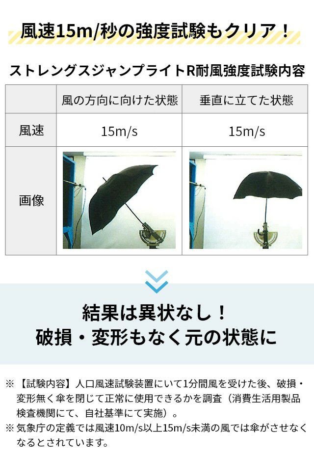 他の画像を見る 強風や突風にも耐える、裏返りにくい構造のジャンプ傘。太いグラスファイバー骨と、補強パーツで高強度を実現!親骨65cmの大きめサイズで荷物が濡れる心配もありません。 マブ 長傘 ストレングスジャンプライトR SMV-4181 傘 ジャンプ傘 雨傘 ワンタッチ傘 メンズ傘 レディース傘 耐風傘 アンブレラ 洋傘 紳士傘 65cm 風に強い 65センチ オシャレ 大きい 大きめ 大判 軽量 ワンタッチ 壊れにくい 耐風 おしゃれ mabu 当店特別価格 ¥ 2,750 税込 詳細を見る お気に入りに登録する