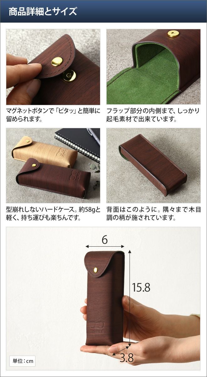 他の画像を見る 落ち着きのある木目調デザインがお洒落なメガネケース。マグネットボタンで開閉できるので、出し入れもスマートです。 EYEGLASS CASE WOOD BUCA 当店特別価格 ¥ 2,200 税込 在庫切れ 詳細を見る お気に入りに登録する
