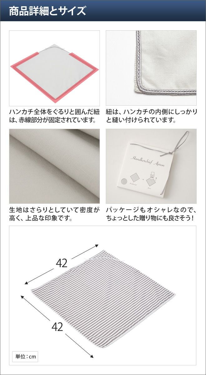 他の画像を見る ハンカチエプロン/大判/ハンカチ/食事用エプロン/前掛け/外食/テイクアウト/多機能/無地/ストライプ/おしゃれ/レディース/メンズ/贈り物/プレゼント/日本製 ハンカチエプロン ◆メール便配送◆ 当店特別価格 ¥ 2,420 税込 在庫切れ 詳細を見る お気に入りに登録する