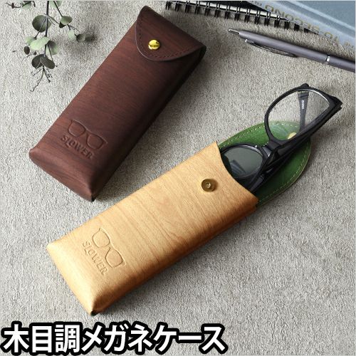 リアルな木目調デザインがお洒落なメガネケース。デスクの上に置いても他のインテリアを邪魔しません!