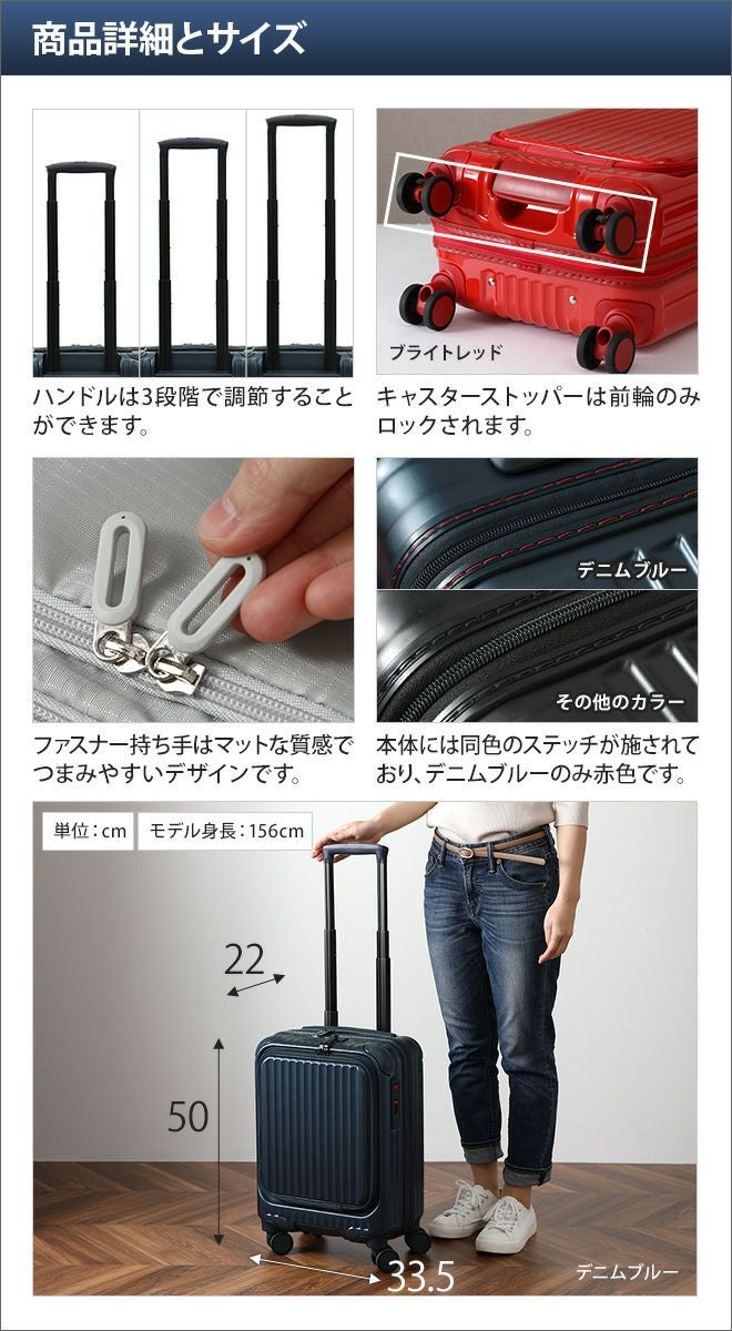 他の画像を見る innovator ハードジップキャリー 38L は、スウェーデンの国旗モチーフデザインが目を引くスーツケース。1泊~3泊にぴったりな機内持ち込み対応で扱いやすいサイズです。 スーツケース 【選べる豪華特典】 ハードジップキャリー innovator イノベーター 38L 機内持ち込み対応 フロントポケット トランク キャリーバッグ キャリーケース おしゃれ 当店特別価格 ¥ 23,980 税込 詳細を見る お気に入りに登録する