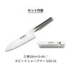 万能包丁として使える三徳 18cm、簡易シャープナーが付いたセットです。