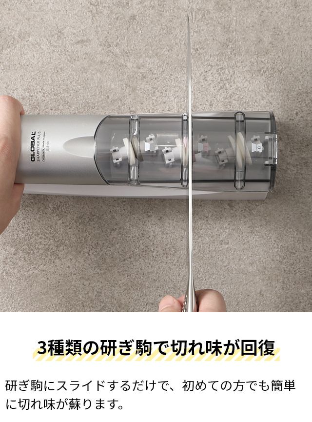 他の画像を見る GLOBAL包丁とGLOBAL-IST包丁、どちらの包丁にも使える兼用シャープナー。包丁研ぎが初めての方でも簡単に切れ味が蘇ります 【無料ラッピング】【豪華特典付き】グローバル シャープナープラス GSS-04 GLOBAL-IST両用 兼用モデル 包丁研ぎ器 セラミックシャープナー 砥石 両刃 簡単 ダイヤモンド駒 グローバルイスト お手入れ メンテナンス 吉田金属 日本製 GLOBAL SHARPENER PLUS 当店特別価格 ¥ 7,700 税込 在庫切れ 詳細を見る お気に入りに登録する