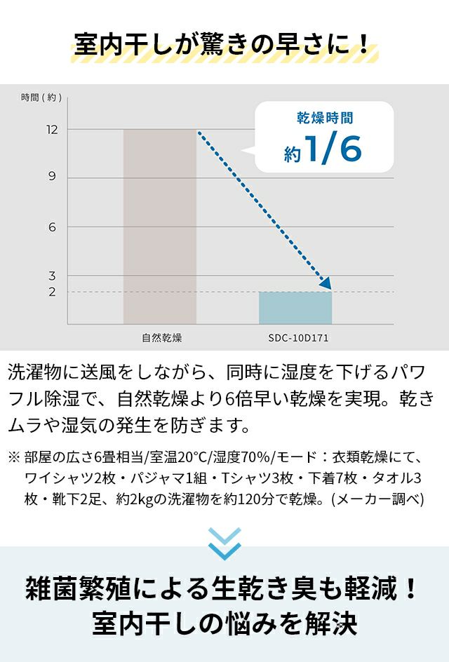 他の画像を見る 一日7.6Lのパワフル除湿!自動ルーバーの送風による素早い部屋干しで洗濯物のニオイを抑制。デシカント式除湿機は梅雨はもちろん冬の結露にも効果的、一年中活躍します。 シロカ 【選べる豪華特典】 除湿機 衣類乾燥除湿機 SDD-7D151 衣類乾燥機 衣類乾燥 室内干し 部屋干し 洗濯物 おしゃれ シンプル 梅雨 湿気 結露 花粉対策 カビ対策 デシカント 送風 一人暮らし パワフル 強力 リビング 脱衣所 寝室 キッチン siroca 当店特別価格 ¥ 29,700 税込 詳細を見る お気に入りに登録する