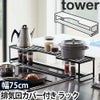 山崎実業/キッチンラック/コンロ奥ラック/スパイスラック/排気口カバー/コンロカバー/グリルカバー/調味料ラック/スリム/ラック/キッチン収納/キッチン/台所/収納/yamazaki/タワーシリーズ/白/ホワイト/黒/ブラック