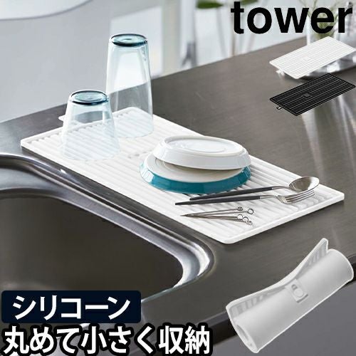 山崎実業 タワー 水切りマット くるくるシリコーンドライマット 5700 5701 シリコンマット 鍋敷き 滑り止めマット シリコン おしゃれ 食器置き 北欧 キッチン 洗える 折りたたみ コンパクト 食洗機 滑り止め 一人暮らし 丸める 水切りかご tower