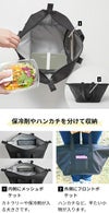 しっかりとした生地で作られていて、開け閉めできるファスナー付き。保温、保冷どちらにも対応しています。内側のメッシュポケットには保冷剤を入れることも可。