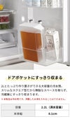 2リットルと大容量なのに、冷蔵庫のドアポケットにもすっきり収まるスリムサイズ。幅8.1cmのスクエア型で、無駄なスペースをつくらずスッキリ収納できます。