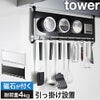 スチールパネルにマグネットアイテムを取り付けて、自分だけのオリジナル収納を作ることができる「tower レンジフードスチールパネル&フック」。設置方法は簡単で、レンジフードの折り返し部分に引っ掛けるだけ!奥行きスリムで浮かせることで清潔さをキープ。付属のフックでキッチンツールを吊り下げたり、調味料をすっきり整理整頓して理想のキッチン作りに役立ちます。