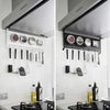 パネル下バーに引っ掛けるフックが8個付いてます。キッチンツールを吊り下げておくと、調理中すぐに手に取れて便利です。