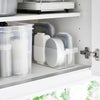 底に入れてある斜めトレーを外せば、冷蔵庫内の高さのない上段にも収納できます。